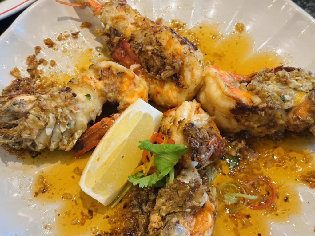 ตบท้ายด้วย กุ้งแม่น้ำทอดเกลือ 4 ตัว ตัวใหญ่ สด หอม เนื้อแน่น รสชาติกลมกล่อมกำลังดี