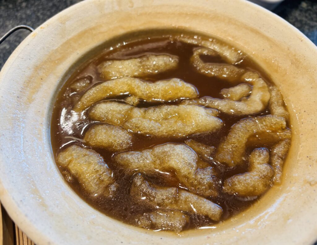 ต่อด้วย เมนูซิกเนเจอร์อย่าง กระเพาะปลาเนื้อปูน้ำแดงหอยเป๋าฮื้อ น้ำซุปเข้มข้น เครื่องแน่น ให้ความรู้สึกพรีเมียมสมกับชื่อเมนูมงคล
