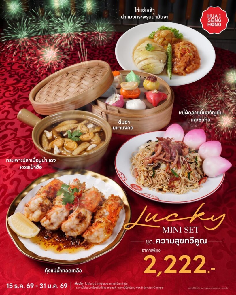 ครั้งนี้ขอแนะนำเมนูที่เข้ากับเทศกาลปีใหม่ Lucky Mini Set (ราคา 2,222 บาท) ที่ทั้งอิ่มครบ ทั้งได้รสชาติและความหมายดีๆ ถือเป็นไฮไลต์ของเซ็ตเมนูมงคล ซึ่งรวมมาให้ครบถึง 5 เมนู ด้วยกัน