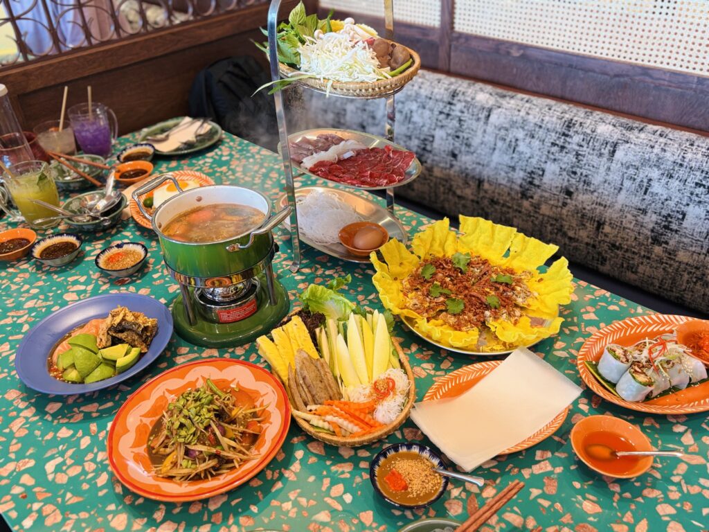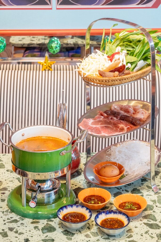 เมนูไฮไลต์ของร้านคือ หม้อไฟ Slay Yuan การตีความใหม่ของซุปเฝอเวียดนามและแจ่วฮ้อนอีสาน ที่ผสานความหอม กลมกล่อม และความแซ่บไว้ด้วยกัน ใครชอบหมูสั่งเซ็ตหมู ส่วนคนชอบเนื้อแบบเราต้องสั่งเซ็ตเนื้อเท่สนั้น บอกเลยว่าอร่อยจัดจ้าน กินเพลิน แบบหยุดไม่ได้เลยละ