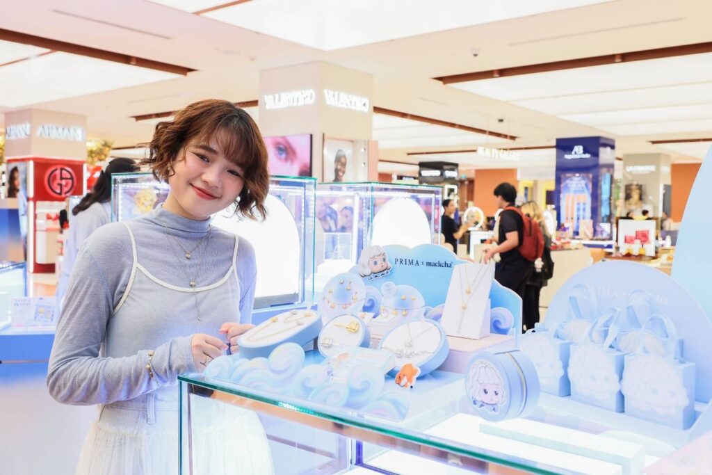 ครั้งนี้ PRIMA จับมือกับศิลปินรุ่นใหม่ “แม็กกี้–ชรารัตติ์ สาระอาภรณ์” หรือที่รู้จักในนาม “Mackcha” Influencer ผู้มีสไตล์โดดเด่นเฉพาะตัวที่สื่อสารผ่านคาแรกเตอร์ Chalotte ที่ได้รับความนิยมในกลุ่มคนรุ่นใหม่และนักสะสม ถ่ายทอดเรื่องราวของมิตรภาพและการเดินทางในทุกช่วงเวลาอันล้ำค่าผ่านเครื่องประดับคอลเลกชันพิเศษ “PRIMA x Mackcha | Chalotte Golden Gift Collection” โดยคาแรกเตอร์ “Chalotte” คือเด็กผู้หญิงผมสีขาวหยิกสั้นที่ Mackcha สร้างขึ้นเพื่อสะท้อนภาพส่วนลึกของตนเอง พร้อมสัตว์ทะเลเป็นเพื่อนและมาสคอต ซึ่งเปรียบเสมือนเพื่อนสนิทในโลกจิตใจของศิลปิน และเป็นภาพแทนความรู้สึก ความฝัน และการเยียวยาที่เธอถ่ายทอดผ่านงานศิลป์