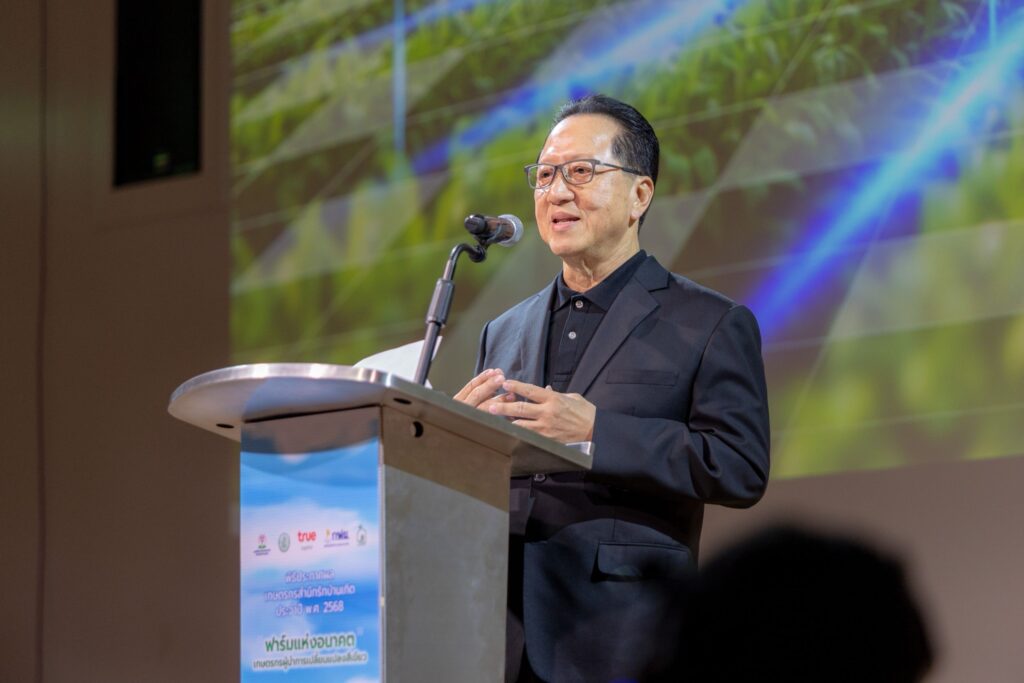 คุณซิกเว่ เบรกเก้ ประธานคณะผู้บริหารกลุ่ม บมจ. ทรู คอร์ปอเรชั่น กล่าวว่า “ด้วยภาคการเกษตรเป็นหนึ่งในเสาหลักของเศรษฐกิจไทย และเกษตรกร ซึ่งเป็นกระดูกสันหลังของชาติ คือรากฐานสำคัญที่ช่วยขับเคลื่อนสังคมให้เข้มแข็ง เพราะเป็นผู้ผลิตอาหารที่ปลอดภัย เปี่ยมด้วยคุณค่าทางโภชนาการ และยังมีบทบาทสำคัญอย่างยิ่งต่ออนาคตของประเทศไทย ด้วยเหตุนี้ ทรู คอร์ปอเรชั่น จึงมุ่งมั่นในการเป็นผู้นำบริษัทโทรคมนาคม-เทคโนโลยีไทยที่นำความเชี่ยวชาญ เทคโนโลยี และระบบนิเวศดิจิทัลครบวงจร มาช่วยแก้ไขปัญหาและรับมือกับความท้าทายสำคัญของประเทศ โดยเฉพาะผลกระทบจากการเปลี่ยนแปลงสภาพภูมิอากาศที่ยิ่งซับซ้อนและคาดเดาได้ยากขึ้น โดยตลอด 17 ปีที่ผ่านมา ทรู ได้ร่วม ‘ปลูก’ ความร่วมมือ และ ‘ปลูก’ ทักษะใหม่ๆ ให้แก่เกษตรไทย ผ่านความร่วมมือกับมูลนิธิร่วมด้วยช่วยกันสำนึกรักบ้านเกิด และกรมส่งเสริมการเกษตร พร้อมต่อยอดนำศักยภาพด้าน Climate-Tech ของทรู ตั้งแต่การนำ AI มาใช้เพื่อเพิ่มประสิทธิภาพการใช้พลังงาน ไปจนถึงระบบเกษตรแม่นยำอัจฉริยะ (IoT Precision Farming) พร้อมมุ่งสนับสนุนภาคการเกษตรไทยที่เป็นมิตรต่อสิ่งแวดล้อม สมาร์ทขึ้น เข็มแข็งขึ้น และมีความยืดหยุ่นต่อการเปลี่ยนแปลงมากขึ้น ในโอกาสนี้ ผมขอแสดงความยินดีกับเกษตรกรยุคใหม่ทุกท่านที่ร่วมกัน ‘ปลูกอนาคตการเกษตรไทย’ อย่างแท้จริง”