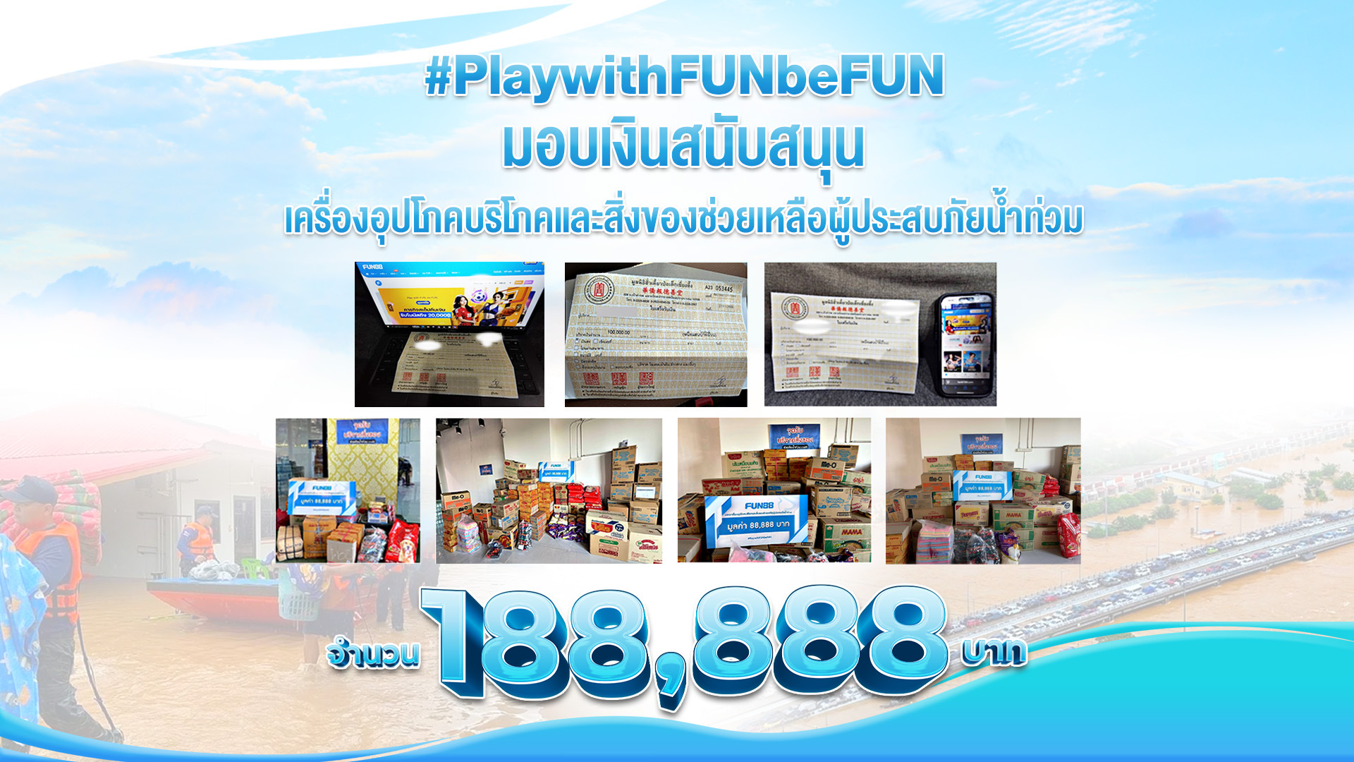 การร่วมสนับสนุนตอบแทนสังคมในครั้งนี้แสดงให้เห็นถึงความมุ่งมั่นของช่องสื่อ Play with FUN, be FUN ในการสนับสนุนชุมชนและช่วยเหลือผู้ที่ได้รับผลกระทบจากภัยพิบัติ และอยู่คู่กับสังคมมาตลอด 18 ปี