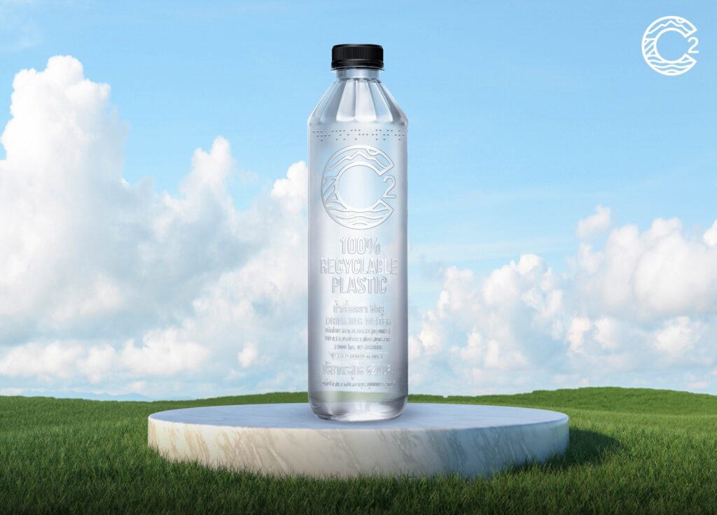 นางสาวธัญรัศม์ จิรฐิติเกียรติ ประธานกรรมการบริหาร บริษัท ซี ดริ้ง จำกัด เปิดเผยว่า แนวคิดน้ำดื่มไร้ฉลากของ C2 เริ่มต้นจากการตั้งคำถามเชิงโครงสร้างต่ออุตสาหกรรมว่า ในเมื่อฉลากพลาสติกคือหนึ่งในต้นเหตุของปัญหาขยะ เหตุใดจึงยังถูกมองเป็น “สิ่งจำเป็น” ของบรรจุภัณฑ์น้ำดื่ม คำถามดังกล่าวนำไปสู่การออกแบบขวดที่ไม่ใช้ฉลากตั้งแต่กระบวนการผลิตแรกเริ่ม ส่งผลให้บรรจุภัณฑ์สามารถเข้าสู่กระบวนการรีไซเคิลได้อย่างมีประสิทธิภาพ ลดขั้นตอนการคัดแยก ลดต้นทุนในระบบจัดการขยะ และเพิ่มมูลค่าวัสดุรีไซเคิลในห่วงโซ่อุตสาหกรรมโดยรวม