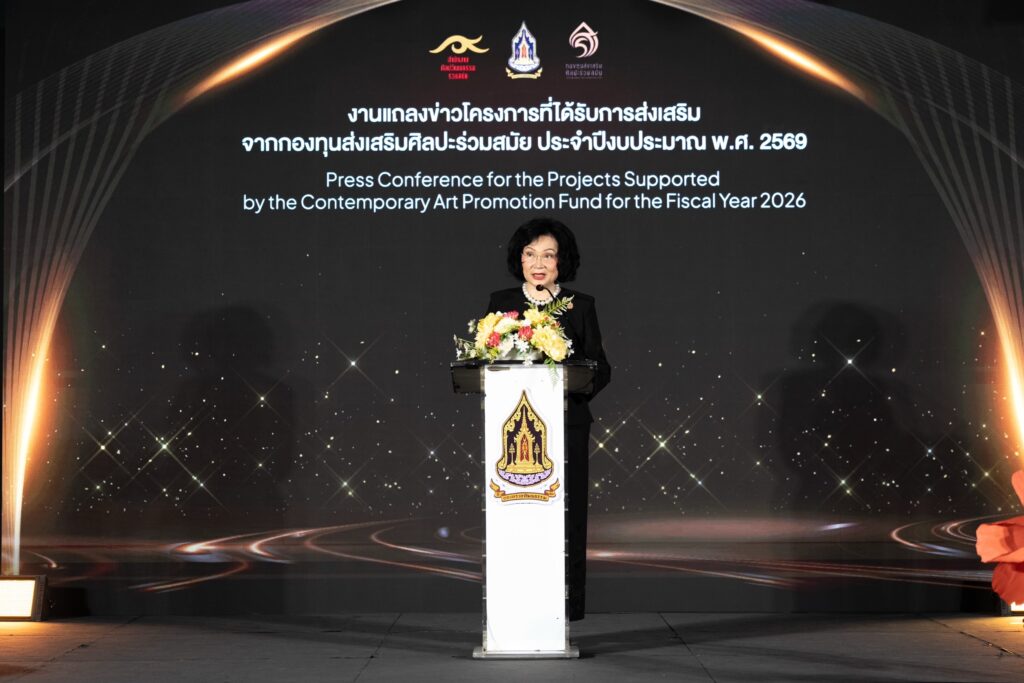 คุณหญิงปัทมา ลีสวัสดิ์ตระกูล ประธานกรรมการบริหารกองทุนส่งเสริมศิลปะร่วมสมัย สศร. กล่าวว่า กองทุนส่งเสริมศิลปะร่วมสมัยจัดตั้งขึ้นเมื่อปีพ.ศ. 2551 ตามพ.ร.บ.ส่งเสริมศิลปะร่วมสมัย พ.ศ. 2551 ตลอดระยะเวลา 18 ปีที่ผ่านมา กองทุนฯได้สนับสนุนการทำงานของศิลปินและองค์กรทางศิลปวัฒนธรรมครอบคลุมศิลปะทุกสาขา ซึ่งนับตั้งแต่ปีพ.ศ. 2561 – 2569 กองทุนฯได้ส่งเสริมโครงการไปแล้วทั้งหมด 367 โครงการ และจัดสรรเงินสนับสนุนรวมกว่า 116 ล้านบาท โดยในปีพ.ศ. 2569 มีโครงการที่ได้รับการส่งเสริมทั้งหมด 44 โครงการ ซึ่งครอบคลุม 9 สาขา ได้แก่ ทัศนศิลป์ , วรรณศิลป์, ดนตรี, ศิลปะการแสดง, ภาพยนตร์, สถาปัตยกรรม, มัณฑนศิลป์, เรขศิลป์ , ออกแบบเครื่องแต่งกาย ซึ่งทุกโครงการที่ได้รับการส่งเสริมจากกองทุนฯ ล้วนมีความโดดเด่น และมีเอกลักษณ์ในแบบฉบับของตนเองและวธ.โดยสศร. กองทุนฯ ผู้ให้การสนับสนุน เครือข่ายศิลปิน เครือข่ายศิลปะร่วมสมัยและผู้มีส่วนเกี่ยวข้องทุกภาคส่วนต่างรู้สึกภาคภูมิใจที่ได้มีส่วนร่วมในการส่งเสริมศิลปินและเครือข่ายศิลปะร่วมสมัยให้สามารถพัฒนาองค์ความรู้และต่อยอดความคิดสร้างสรรค์และเผยแพร่ผลงานศิลปะร่วมสมัยของไทย ไปสู่ระดับชาติและระดับนานาชาติ