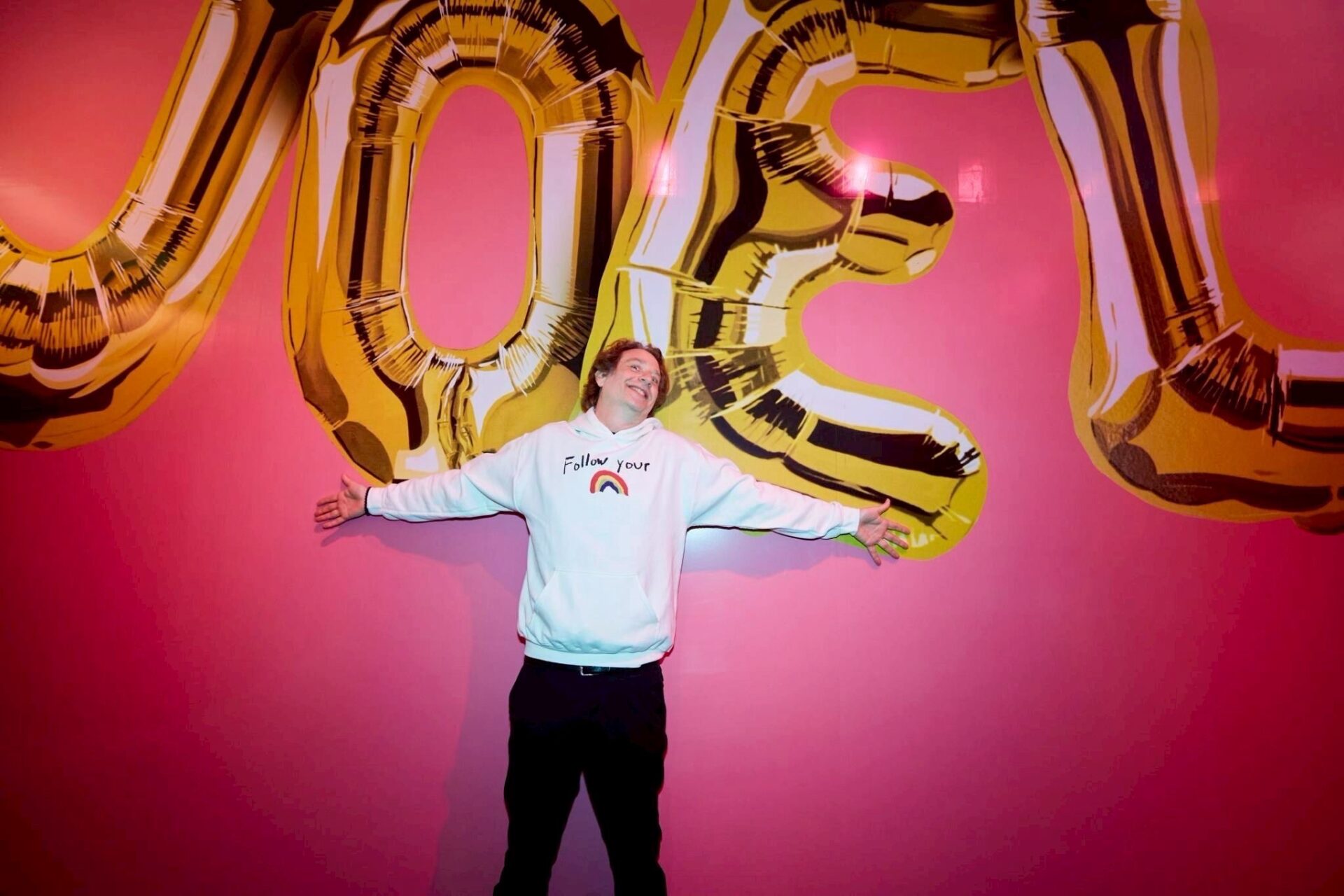 นิทรรศการครั้งนี้นำเสนอผลงานซิกเนเจอร์ของ Joel Mesler ที่ได้รับการคัดสรรเป็นพิเศษ ณ ชั้น G ห้างสรรพสินค้าเซ็นทรัลชิดลม ถ่ายทอดการเล่าเรื่องผ่านตัวอักษร สีสัน และมิติทางอารมณ์ในแบบฉบับอันเป็นเอกลักษณ์ของศิลปิน เปิดมุมมองใหม่ของการเสพงานศิลปะที่ทั้งเข้าถึงง่ายและเปี่ยมความหมาย ต่อยอดประสบการณ์ด้วย Pop-up Experience ณ เดอะ คอร์นเนอร์ ชั้น G ซึ่งถูกเนรมิตให้เป็น “Jo’s Playground” อินสตอลเลชันศิลปะแห่งจินตนาการในรูปแบบสนามเด็กเล่น ผสานองค์ประกอบขนาดใหญ่ สีสันสดใส และมุมถ่ายภาพที่เปิดโอกาสให้ผู้ชมได้สำรวจและมีปฏิสัมพันธ์กับงานศิลป์อย่างอิสระ โดยมีไฮไลต์เป็น Interactive Balloon Installation ที่ชวนทุกคนร่วมสร้างสรรค์ผลงานผ่านการเขียนข้อความแห่งความหวัง ความรัก และพลังบวกลงบนบอลลูน ซึ่งจะค่อย ๆ ก่อรูปเป็นผลงานที่สะท้อนพลังของการมีส่วนร่วมบรรยากาศภายในนิทรรศการจากเครื่องเสียงชั้นนำระดับโลกอย่าง Devialet แบรนด์เครื่องเสียงไฮเอนด์จากฝรั่งเศสที่โดดเด่นด้วยเทคโนโลยีเสียงอันล้ำสมัย ให้มิติของเสียงที่คมชัด โปร่งใส และทรงพลัง ช่วยเติมเต็มประสบการณ์การชมงานให้เปี่ยมด้วยอรรถรสและความสุนทรีย์ยิ่งขึ้น อีกหนึ่งไฮไลต์สำคัญคือชุดผลงาน “Sunrise to Sunset” ที่ถ่ายทอดการเปลี่ยนผ่านของช่วงเวลาในแต่ละวัน ผ่านการใช้สีและถ้อยคำอันเป็นเอกลักษณ์ สื่อถึงการเดินทางของอารมณ์ ความสัมพันธ์ และการค้นหาความหมายของชีวิตในมุมมองของศิลปิน