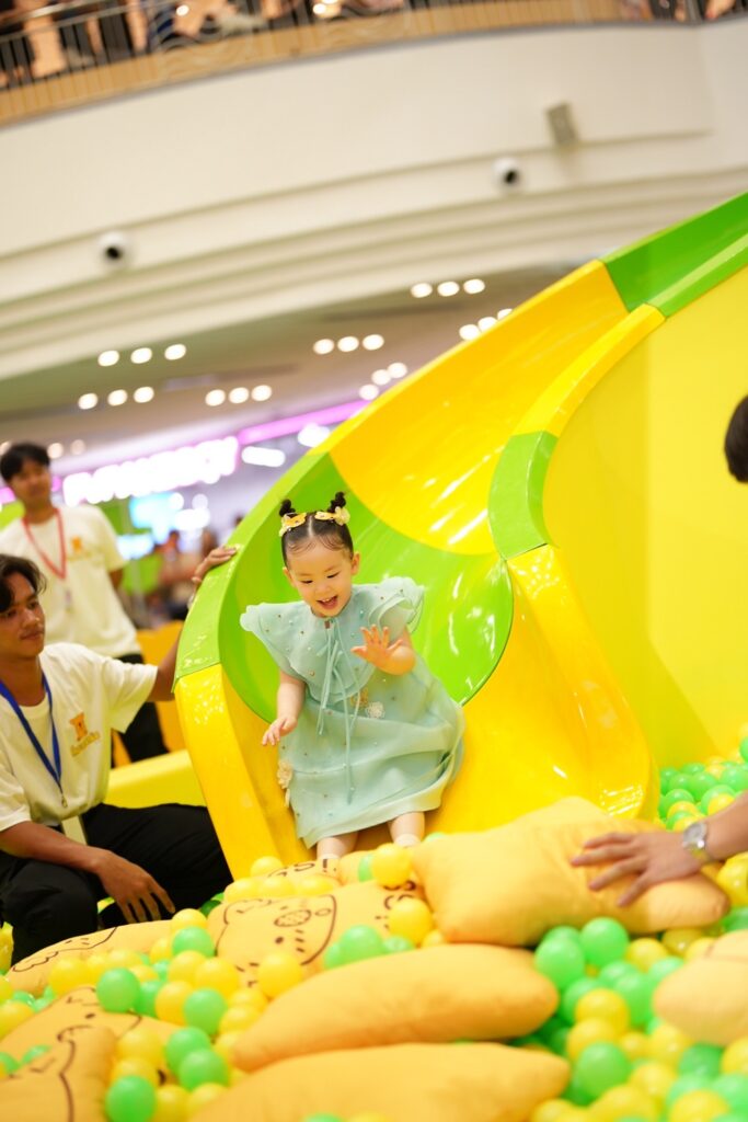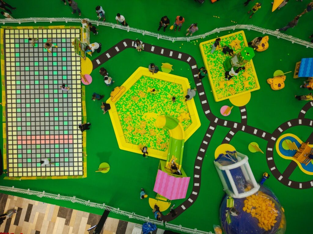 8. Mega Fun-Land (Coupon Zone) อาณาจักรความสนุกขนาดใหญ่สำหรับเด็กสูง 100-140 ซม. อัดแน่นด้วยเครื่องเล่นเสริมพัฒนาการ เช่น ลานกระโดดพื้นเปลี่ยนสี (Jump Floor Game) ที่ท้าทายไหวพริบ บ่อบอลยักษ์ สไลเดอร์ และโดมลม