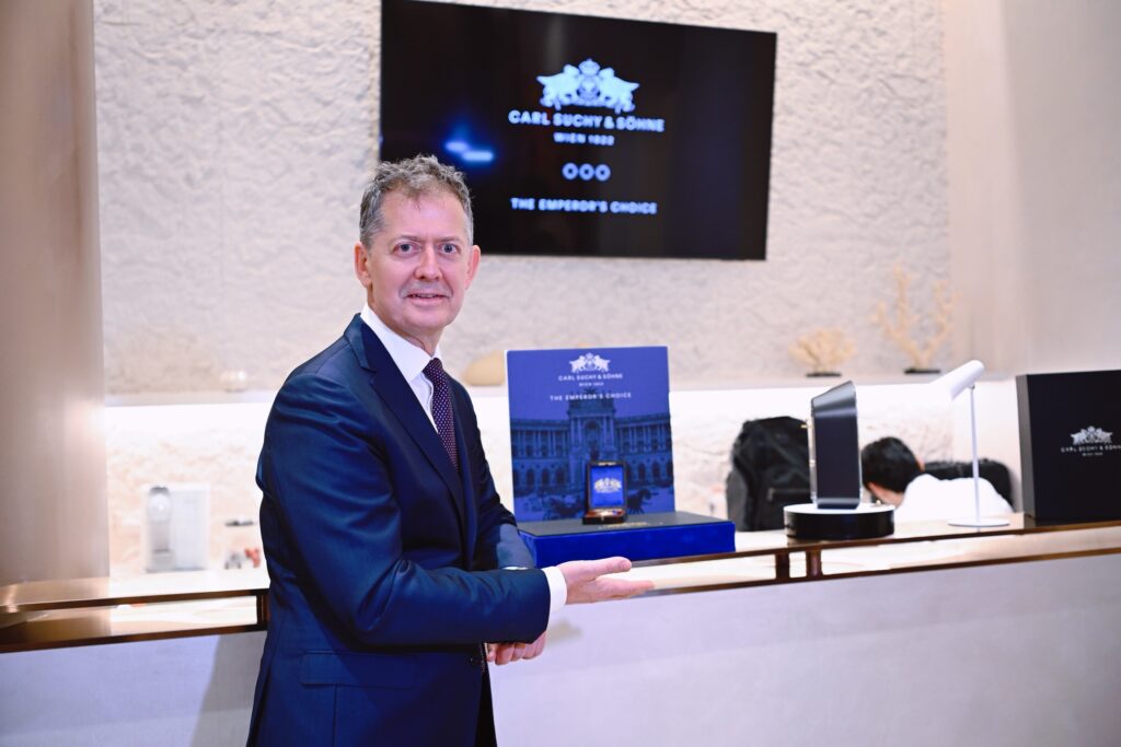 โดยมี Mr. Marcel Gut (มาแซล กู้ด), CEO PRÉCIEUX (THAILAND) พร้อมกับคุณรวิศ เหตานุรักษ์ COO PRÉCIEUX (THAILAND) ร่วมให้การต้อนรับแขกผู้มีเกียรติระดับ VVIP และบรรดาคณะสื่อมวลชนภายในงาน โดยการจัดงานครั้งนี้ทาง PRÉCIEUX ได้รับเกียรติเป็นพิเศษจาก Dr. Robert Punkenhofer (ดร.โรเบิร์ต พังเคิลโฮเฟอร์), CEO CARL SUCHY & SÖHNE และได้รับเกียรติเป็นอย่างสูงจากท่านเอกอัครราชทูต Wilhelm M. Donko (วิลเฮล์ม เอ็ม. ดอนโค) รวมถึง ที่ปรึกษาฝ่ายพาณิชย์ Michael Friedl (ไมเคิล ฟรีเดิล) จากสถานเอกอัครราชทูตออสเตรีย ประจำประเทศไทย และคุณศิริพร ลิจุติภูมิ Omnichannel Category Director – Luxury, Young Fashion and Watches ห้างสรรพสินค้าเซ็นทรัล ได้ให้เกียรติเข้าร่วมงานในครั้งนี้ โดยมีหนุ่มณภัทร นัตธนนท์ ปิ่นโรจน์กีรติ เป็นพิธีกรภายในงาน สำหรับบรรยากาศการจัดงานได้เริ่มขึ้นโดย ทาง Mr. Marcel Gut ได้ขึ้นกล่าวขอบคุณแขกผู้มีเกียรติและกล่าวเปิดงาน พร้อมกับเชิญ Dr. Robert Punkenhofer, CEO CARL SUCHY & SÖHNE ที่บินตรงเพื่อมาเข้าร่วมงานนี้โดยเฉพาะ ได้เล่าถึงเรื่องราวของแบรนด์นาฬิกา CARL SUCHY & SÖHNE อันเป็นตำนานแห่งเรือนเวลาชั้นสูงจากกรุงเวียนนา ที่ได้รับเกียรติประดับอยู่บนข้อมือกษัตริย์แห่งจักรวรรดิออสเตรีย-ฮังการี มาอย่างยาวนานกว่า 200 ปี ไว้ดังนี้