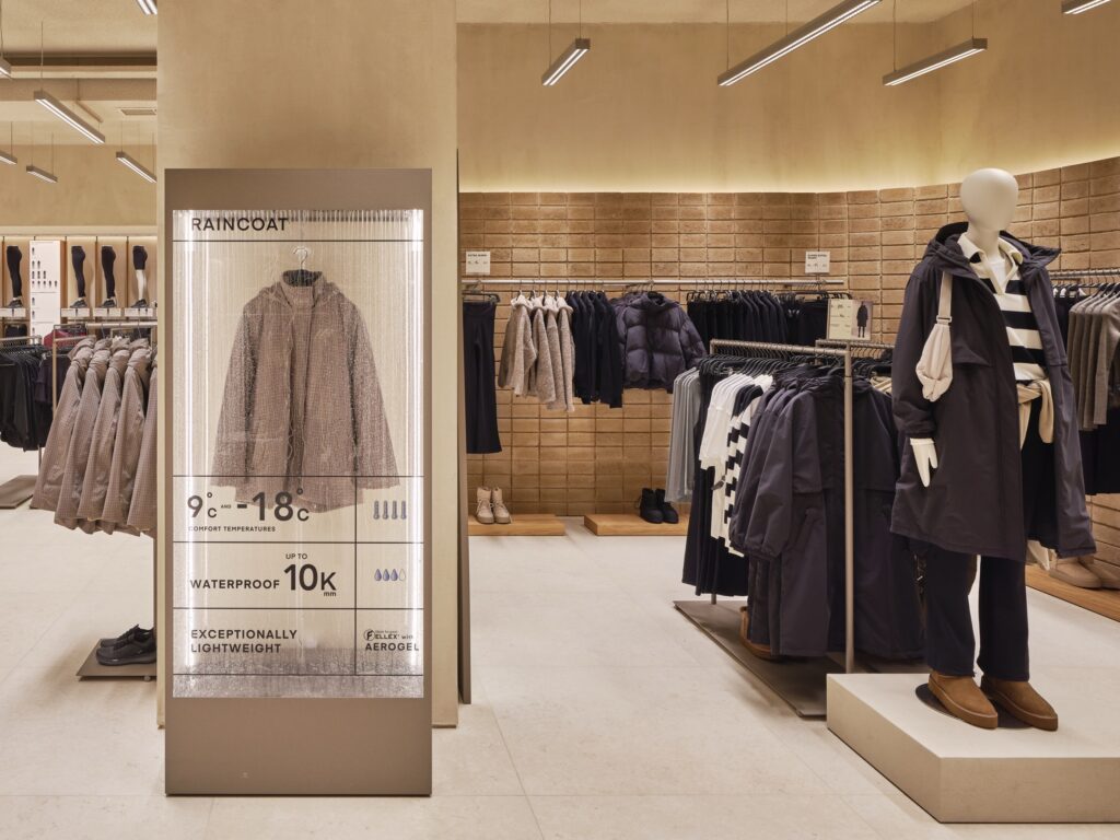 และไม้โอ๊คธรรมชาติ ถูกนำมาใช้เป็นองค์ประกอบหลักโดยรอบพื้นที่ ซึ่งช่วยเพิ่มสัมผัสที่ให้ความอบอุ่น ขณะที่แสงสว่างมีบทบาทสำคัญในการออกแบบครั้งนี้ ด้วยการเดินระบบไฟเส้นแบบต่อเนื่องที่ออกแบบพิเศษ สร้างบรรยากาศร่วมสมัยที่อบอุ่นและเป็นมิตร พร้อมนำสายตาไปตลอดเส้นทางการช้อปปิ้งภายในร้าน