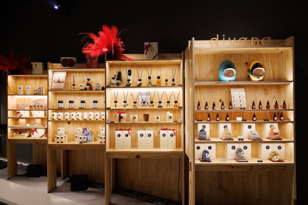 Retail Boutique นำเสนอผลิตภัณฑ์กลิ่นหอมอันเป็นเอกลักษณ์ของ divana ไม่ว่าจะเป็น Oil Perfume, Room Fragrance และ Massage Oil แต่ละคอลเลกชันได้รับการพัฒนาอย่างพิถีพิถัน ทั้งในด้านเนื้อสัมผัสและโครงสร้างกลิ่นที่นุ่มลึก ซับซ้อน และจดจำได้อย่างเป็นเอกลักษณ์ ผลิตภัณฑ์ทุกชิ้นถูกออกแบบให้เป็นมากกว่าการใช้งาน หากแต่เป็นส่วนหนึ่งของ Ritual ในชีวิตประจำวัน ที่ช่วยสร้างช่วงเวลาแห่งความผ่อนคลายและความทรงจำที่อบอุ่น